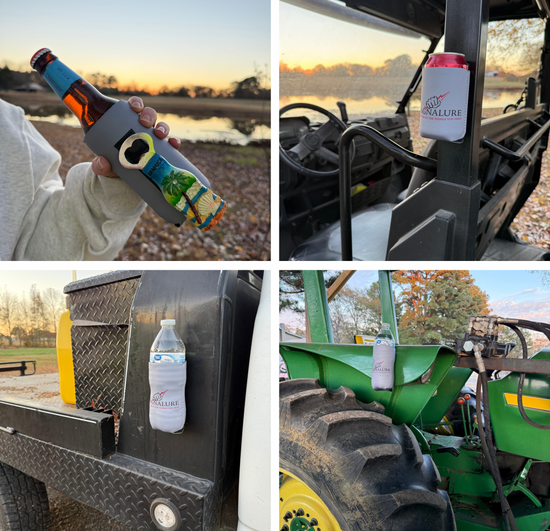 SHOP MAGNETIC COOZIEIntroducing the Magnalure Coozie, the ultimate hands-free neoprene material drink holder built for convenience and versatility. This innovative coozie features a powerful magnetic strip on the back that securely attaches to any metal surface—toolboxes, boats, grills, tailgates, tractors, you name it.